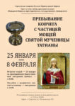 1 февраля в храм во имя святителя Тихона Задонского г. Саратова был принесен ковчег с частицей мощей святителя Спиридона Тримифунтского, одного из самых почитаемых в народе святых. Встреча мощей состоялась 1 февраля за Божественной литургией. Ежедневно в 16.00 перед ковчегом совершаются молебны с акафистом святителю Спиридону. Поклониться мощам можно в часы работы храма (с 8.00 до 19.00). Мощи …